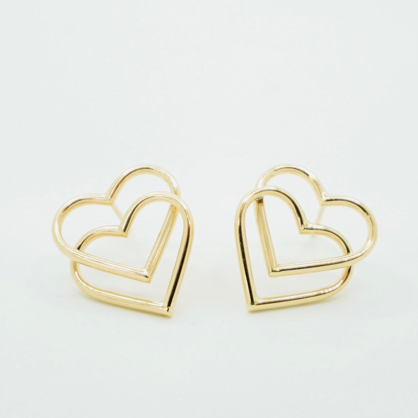 Fancy 14K Yellow Gold Double Heart Earrings EJER0956