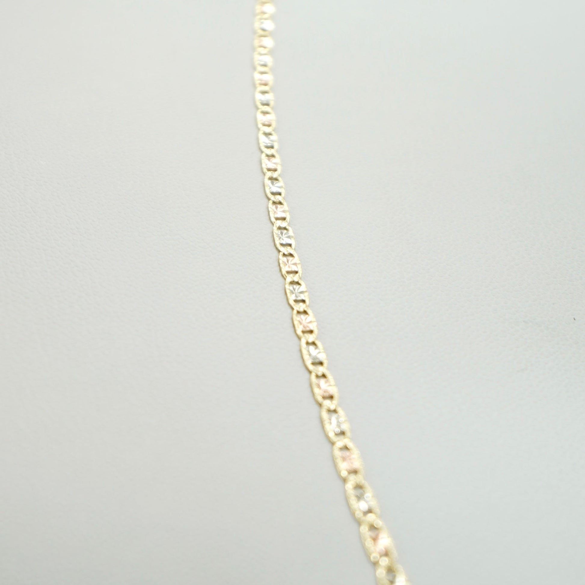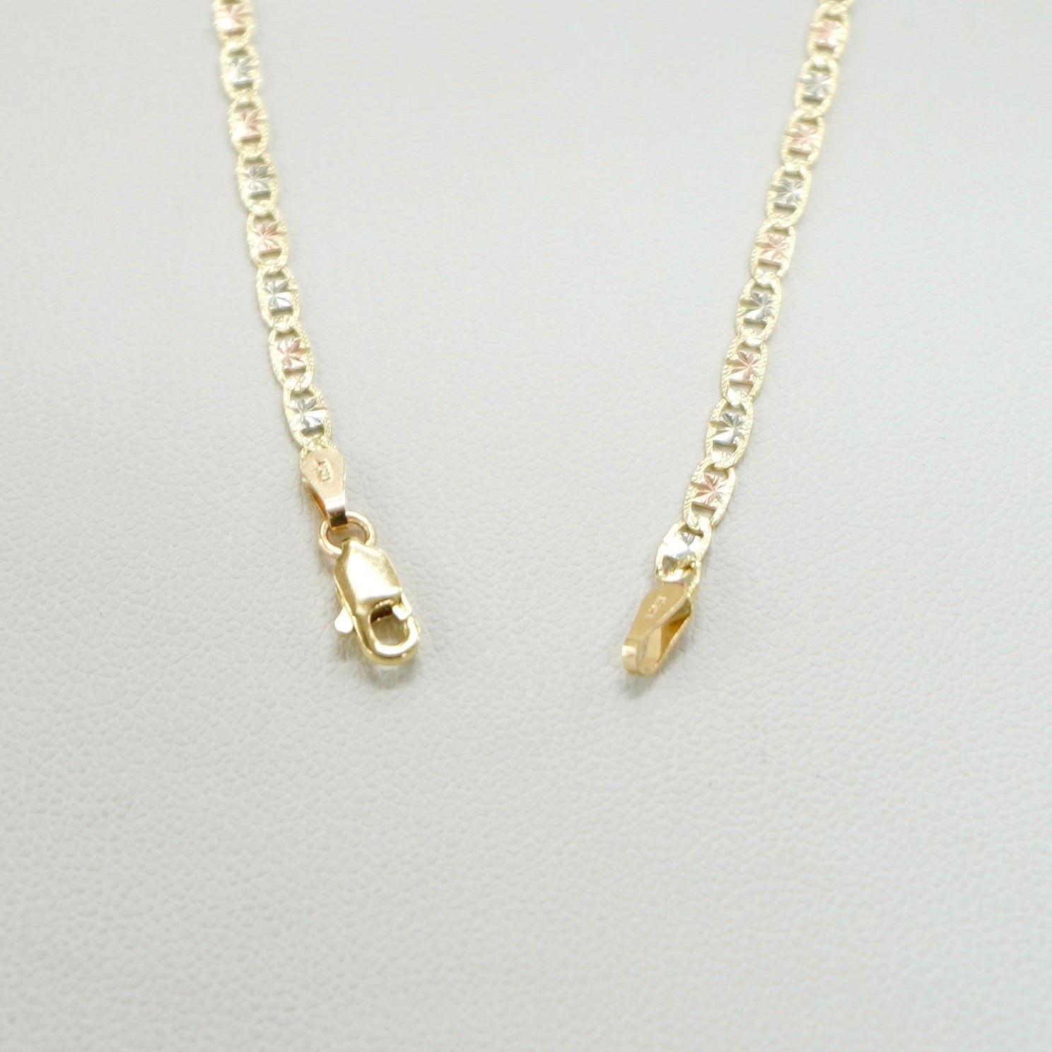 Solid 14K tricolor gold 2.5mm Valentino Star chain with diamond cut accents.