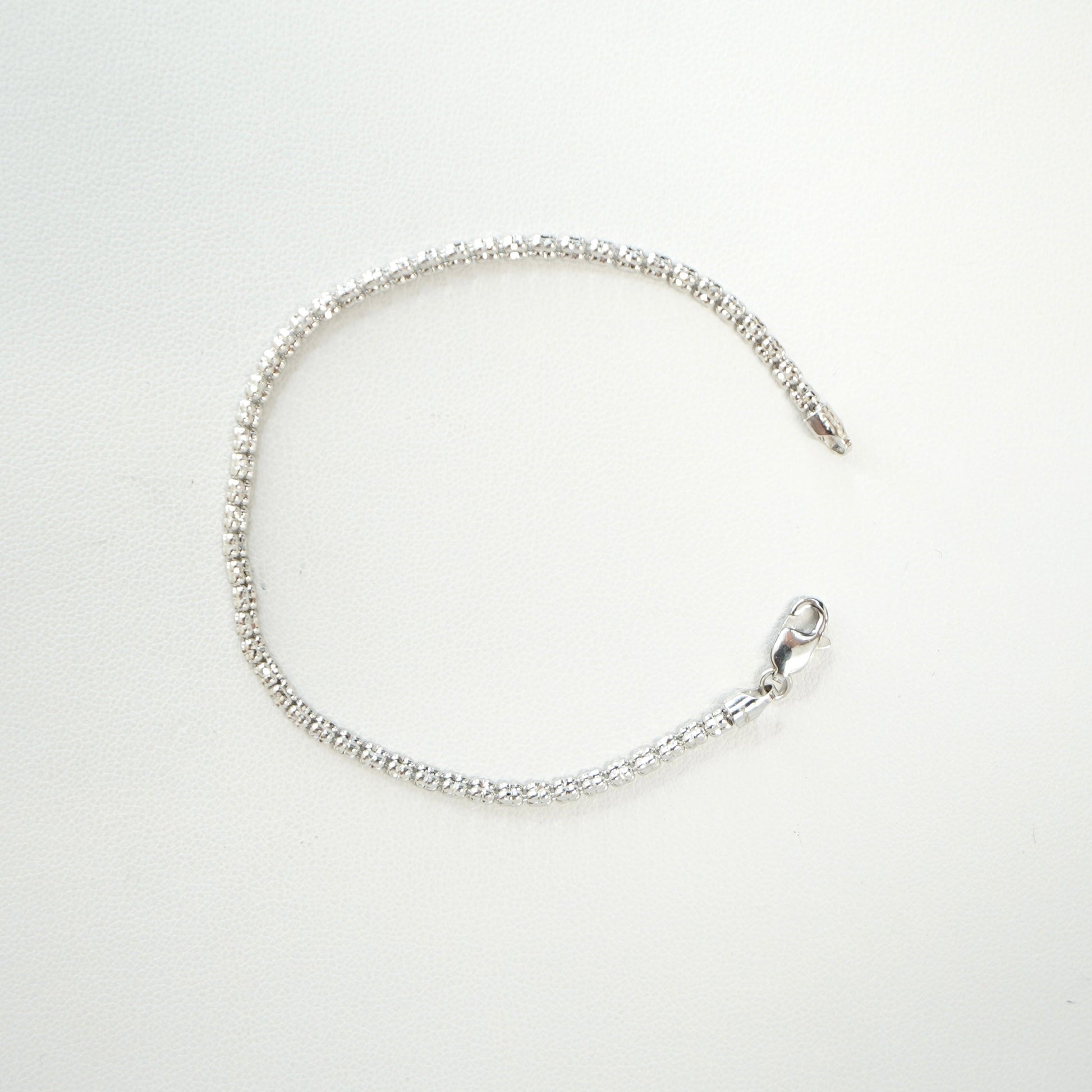 This elegant solid 14K white gold Ice bracelet is crafted to appear as if there is diamonds on the bracelet but it is actually diamond cut with zero stones on the bracelet.