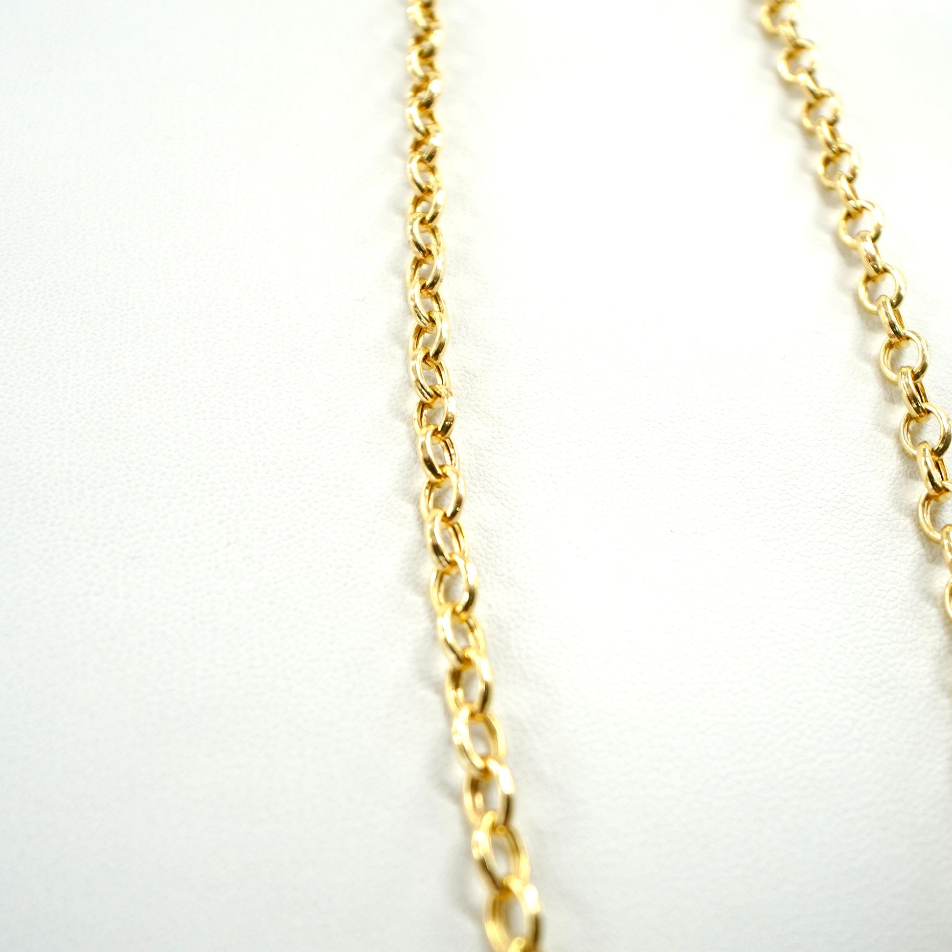 This 14K Yellow Gold Rolo Chain is the perfect chain for everyday wear as well as a beautiful complimentary piece to layer with other chains as well. This chain is crafted in high polished 14K yellow gold.