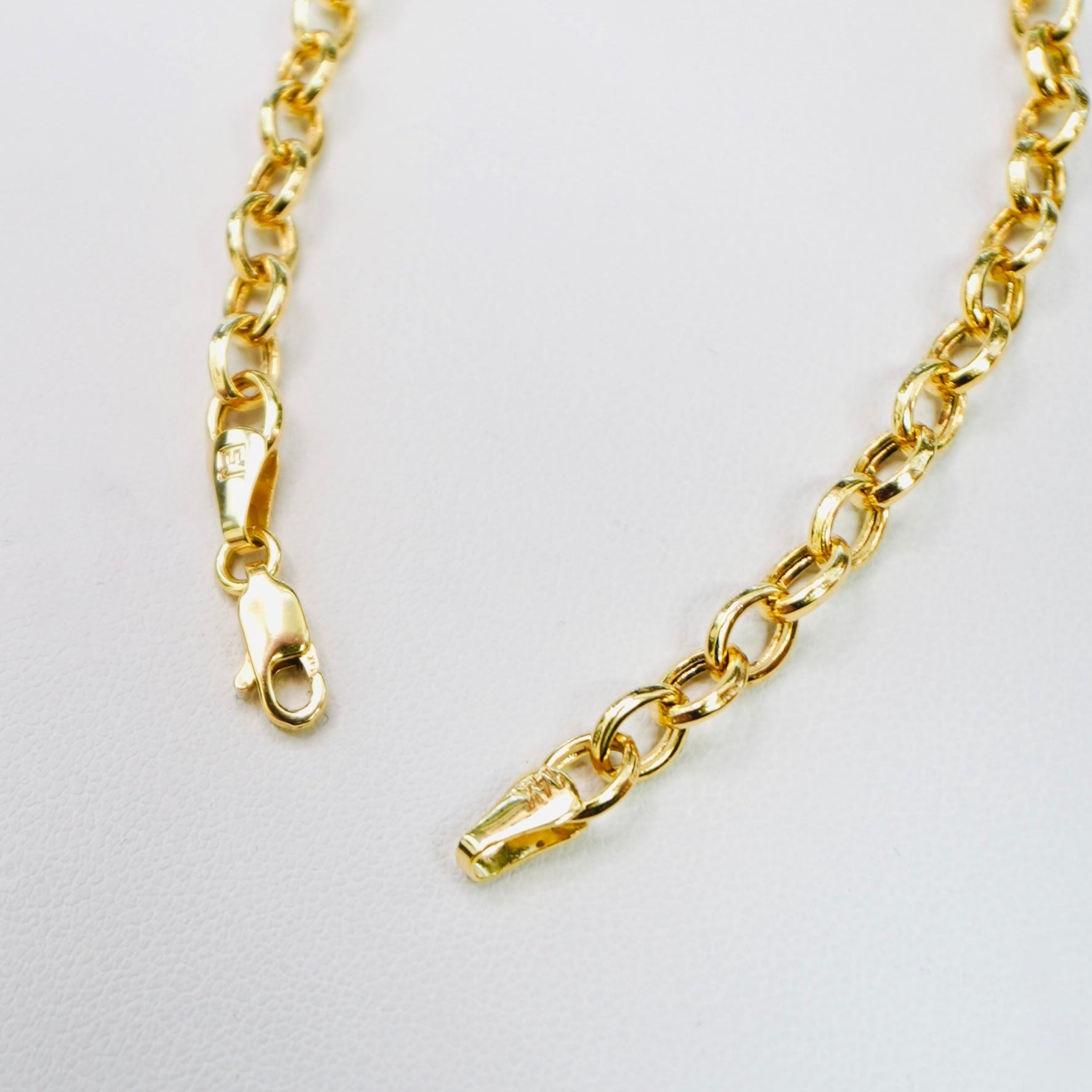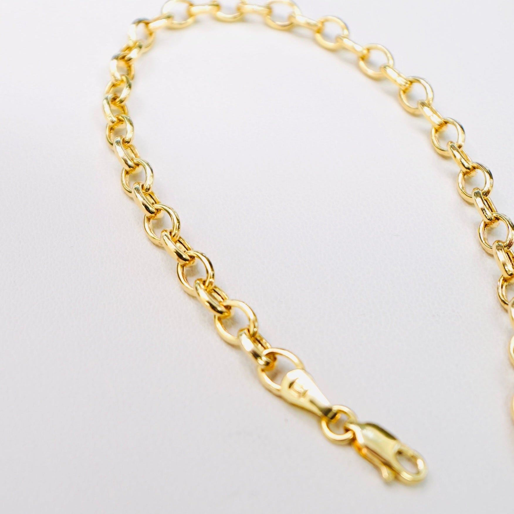 Solid 14K Yellow Gold Hollow Rolo 4mm 8" Bracelet