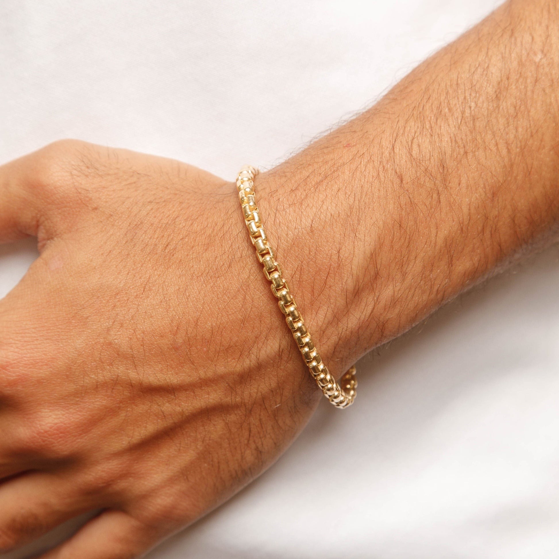 Solid 14K Yellow Gold Round Box 5mm 8" Bracelet